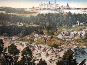 Во так этот замок эпохи Возрождения 16 века выглядел на картине Кранаха с бешеной охотой с всеми князьями-друзьями и даже Сибиллой