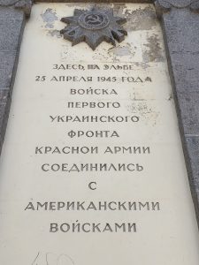 Это Ксюша и Хинрик, тренирующие знаменитое рукопожатие, которое произошло здесь 25.04.1945 между американскими и советскими войсками, одновременно захватившими город. Жители Торгау до сих пор справляют каждый год на этом месте этот знаменательный день. Когда гид рассказала нам об этом, один ( наверное западный) немец воскликнул: «А что здесь справлять?»… Вот так вот у другой половины немцев травма поражения сидит видимо глубоко… Так что, дорогие друзья из России, не надейтесь на снятие санкций. 😬Причина намного глубже …